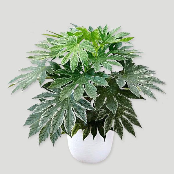 八角金盘(学名:Fatsia japonica (Thunb.)Decne. et Planch)乃指其掌状的叶片,裂叶约8片,看似有8个角而名。它叶丛四季油光青翠,叶片像一只只绿色的手掌。其性耐荫,在园林中常种植于假山边上或大树旁边,还能作为观叶植物用于室内,厅堂及会场陈设。