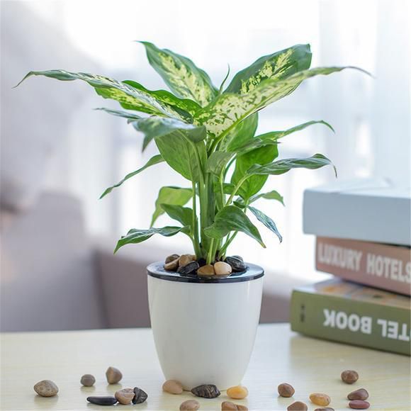 黛粉叶类又称花叶万年青、银斑万年青,原产热带美洲,株高30-90厘米,花直立,节间短,叶长椭圆形,略波状缘,叶面泛布各种乳白色或乳黄色斑纹或斑点,性耐荫,叶色绿意娉婷。主要栽培品种有玛丽安、KIKI、金色太阳、白玉、多仔斑马、黄金宝玉、天堂万年青等。